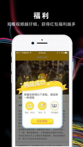 觀看有趣的創(chuàng)意短視頻,參與趣味問(wèn)答,領(lǐng)取各大品牌紅包獎(jiǎng)勵(lì)。觀看越仔細(xì),獎(jiǎng)勵(lì)越豐厚!