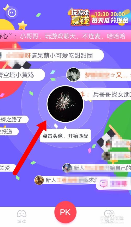 進入后點擊屏幕中央的個人頭像就可以開始匹配好友進行游戲(也可以發(fā)彈幕,讓全世界的人看到),我們點擊一下,如下圖所示。