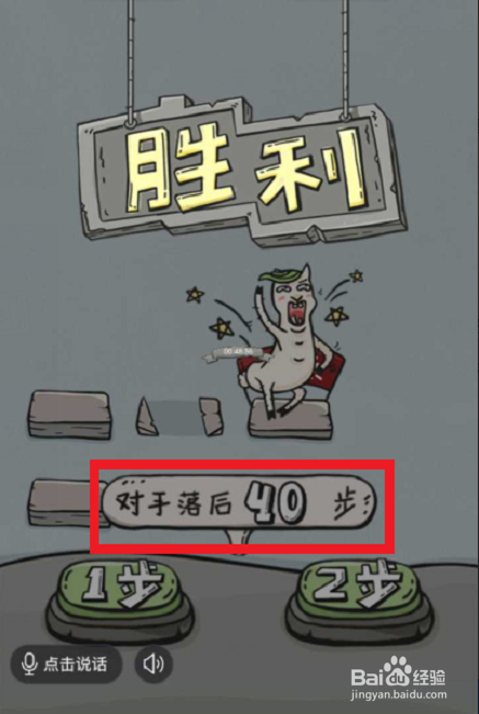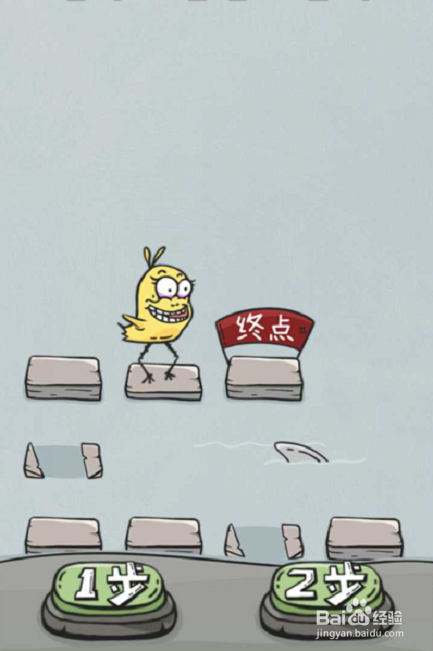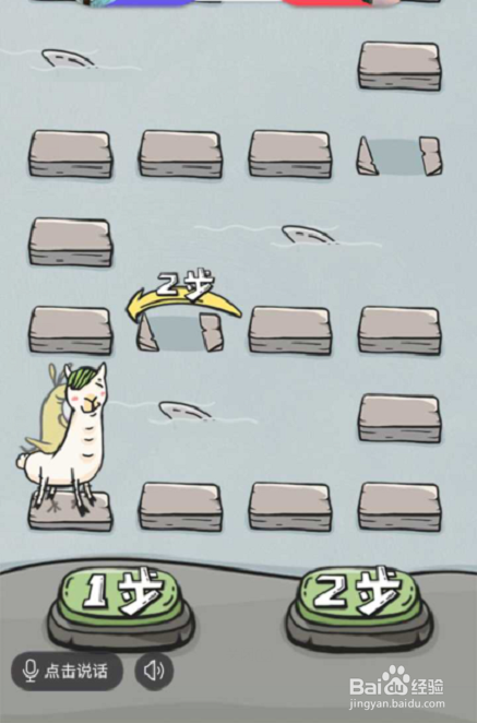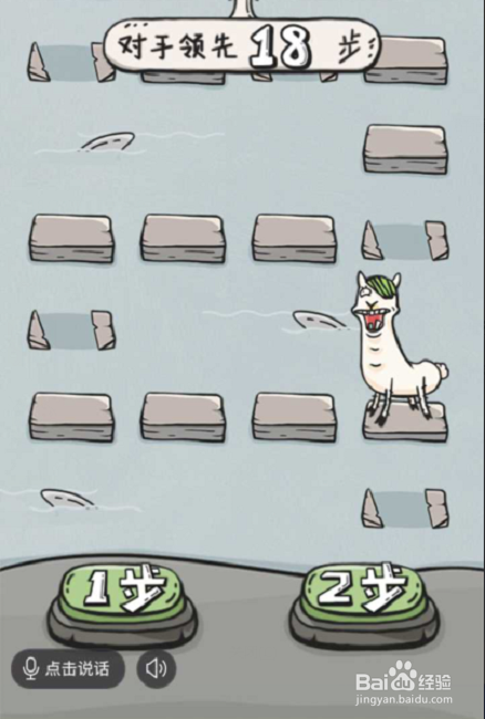 我們可以看到分別為:“一步”、“兩步”的綠鈕,那么應該怎么取擇呢,當選一步時向前蹦一個石塊,二步則蹦兩下,這是基礎的規(guī)定。要知道,速度也就必備的,開局直接點六下“2步”,根本不會落坑。