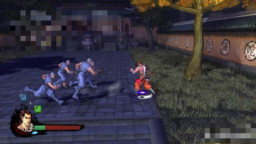 本關(guān)開(kāi)始后先要對(duì)付兩名棍僧,注意保持距離,使用格擋與必殺技消滅之