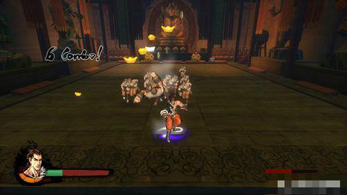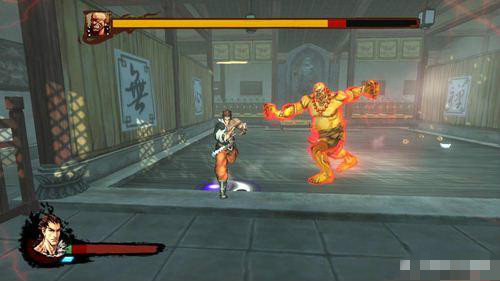 干掉三名大漢后進(jìn)入BOSS戰(zhàn),BOSS會(huì)沖撞攻擊,注意及時(shí)躲閃與格擋,期間還不斷有雜兵前來(lái)騷擾,通過(guò)釋放必殺技可以把BOSS迅速解決