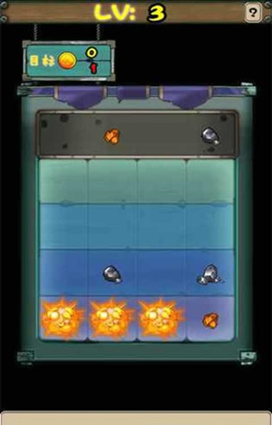 3.點擊界面里的炸藥,可以根據(jù)炸藥等級炸毀一行里的數(shù)個礦石、以騰出足夠空間來合并其他的礦石;炸藥等級可以通過圖標(biāo)上的雷管數(shù)量來判斷;
