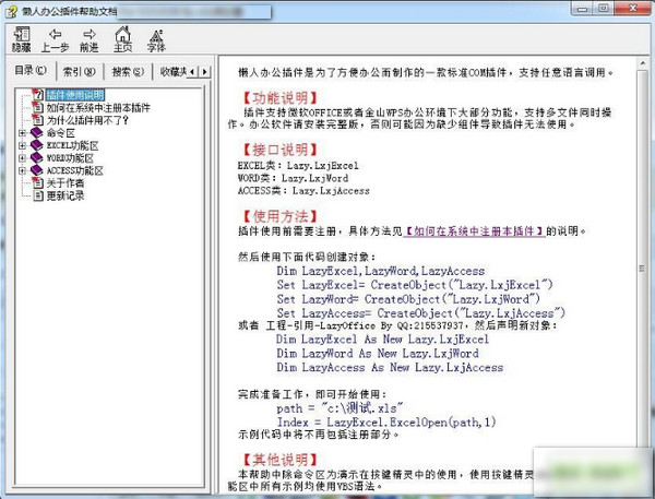 VBS語法下,LazyOffice.dll放在c:\test目錄,可使用以下代碼對插件進行注冊: