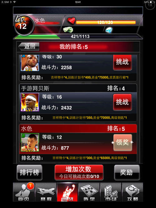 NBA2K全明星在游戲中玩家需要扮演一名籃球俱樂部經(jīng)理,招兵買馬壯大自己的球隊,迎接一個又一個的挑戰(zhàn)。進入游戲后玩家就能看到游戲的首頁,在這里可以管理球隊的隊員、參加比賽、挑戰(zhàn)其他玩家、設置陣型以及購買新球員。
