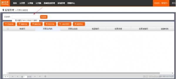 1.點(diǎn)擊【系統(tǒng)管理】→【開(kāi)票終端管理】,選擇“設(shè)備編號(hào)”,點(diǎn)擊【查詢(xún)】