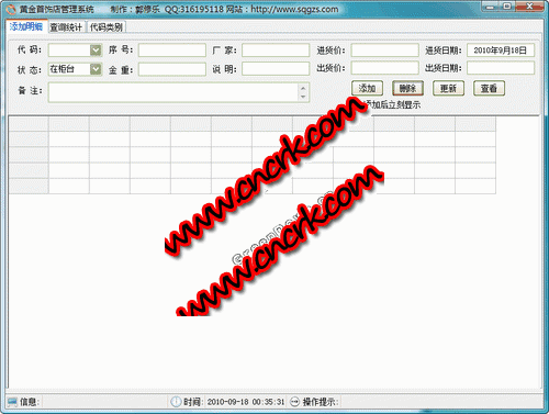 本軟件適用于個體或中小型黃金珠寶首飾商店,可以代替?zhèn)鹘y(tǒng)手工記錄做帳!系統(tǒng)初始登入口令為“333”,使用后請及時修改!
