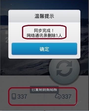 2、可以看到網(wǎng)絡(luò)通訊錄參照手機(jī)數(shù)據(jù)刪掉了一個聯(lián)系人。最下面的數(shù)據(jù)都變成一樣的了。