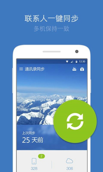 3、如果你是想將手機(jī)上的聯(lián)系人備份到服務(wù)器上,只需點擊圓形的同步按鈕即可。