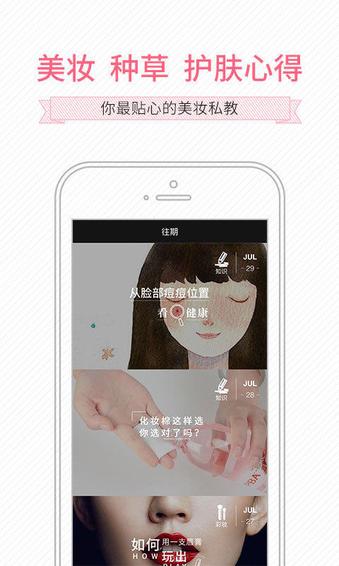 【日?qǐng)?bào)】盤點(diǎn)潮流資訊、美妝tips、種草、護(hù)膚心得…每天為你推薦精選美妝護(hù)膚教程,美美出門不再愁。【菜鳥先飛】零基礎(chǔ)新手必備彩妝技巧;臉、眼、眉、唇細(xì)致的詳細(xì)分類,讓你在化妝的過程中少走歪路。