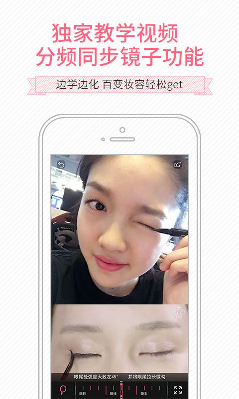 【分頻教學(xué)】視頻分頻教學(xué)功能。顛覆性全新獨(dú)有的“鏡子”功能,可以邊照著鏡子邊同步跟著視頻輕松學(xué)化妝。