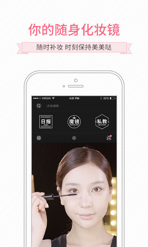 魔鏡魔鏡APP,你貼心的美學(xué)私教。提供大量全面、專業(yè)的彩妝護(hù)膚知識(shí),以圖文并茂的教程 手把手的帶你從彩妝菜鳥變身彩妝達(dá)人。讓愛美的你,能真正學(xué)會(huì)化妝,愛上化妝,更精致的過好“美”一天!【軟件特色】