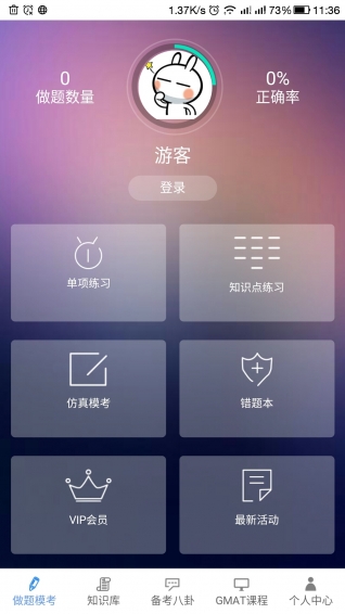 雷哥GMAT app包含GMAT在單項(xiàng)練習(xí)、知識(shí)點(diǎn)練習(xí)、題目分難度練習(xí)、仿真??枷到y(tǒng)、學(xué)前基礎(chǔ)測(cè)評(píng)、知識(shí)庫(kù)學(xué)習(xí)、做題大數(shù)據(jù)報(bào)告、GMAT網(wǎng)課、考試政策等功能。