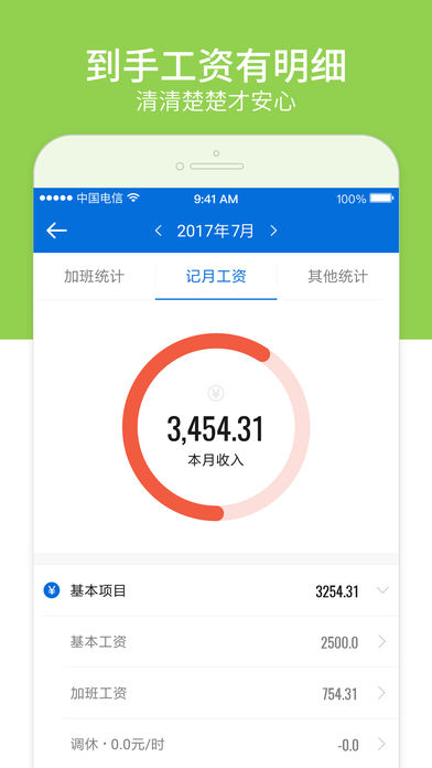 安心記加班,最省心實用小工具,一鍵記錄加班時間,準確快速統(tǒng)計上班工資,隨時查看,讓上班、加班,記工時,算工資,考勤,記錄計算變得根本不是事兒。即使公司沒有工資單,從此也不再需要紙,筆,記事本,計算器,不用到發(fā)工資時一次次跑去HR補工時,不用擔心公司,工廠,老板少發(fā)工資。【軟件特色】