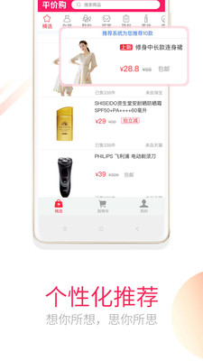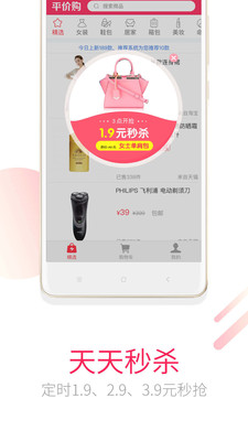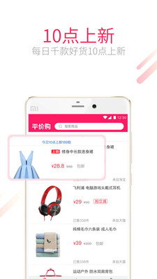 平價(jià)購(gòu)每日10點(diǎn)上新千款新品,覆蓋男女服飾鞋包、童裝童鞋、日用百貨、數(shù)碼家電、文具圖書、美妝個(gè)護(hù)、美食、母嬰等各個(gè)類目。