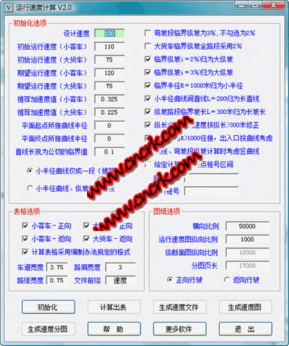 運(yùn)行速度計(jì)算程序能夠計(jì)算各種復(fù)雜線形的運(yùn)行速度,依據(jù)為《公路項(xiàng)目安全性評(píng)價(jià)指南》。免費(fèi)軟件,無(wú)任何功能和時(shí)間上的限制。