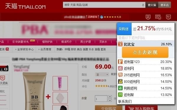 采購迷是一款可以安裝在谷歌瀏覽器上使用的官方購物插件,使用這款采購迷插件可以讓你在上網(wǎng)瀏覽網(wǎng)頁的同時(shí)也能享受到隨時(shí)查看對(duì)比同款商品價(jià)格的強(qiáng)大功能,馬上下載使用吧。再也不會(huì)忘記返現(xiàn)了!最棒的返現(xiàn)比較工具,看誰返更多,讓你省更多!