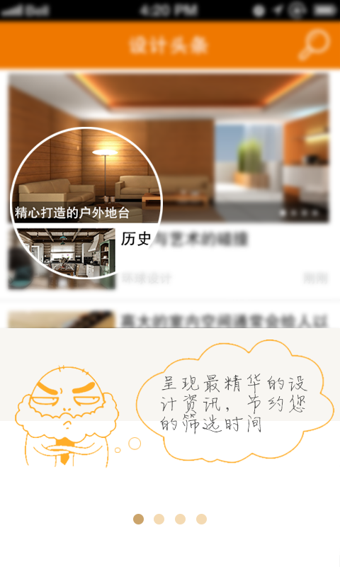 設(shè)計(jì)類網(wǎng)站數(shù)不勝數(shù),設(shè)計(jì)相關(guān)的微信訂閱號(hào)多如繁星,相信這對(duì)于熱衷于了解設(shè)計(jì)行業(yè)信息的來說,無疑是一件的頭疼的事情,擁有設(shè)計(jì)頭條,這個(gè)煩惱將不復(fù)存在。您在設(shè)計(jì)頭條看到的精華設(shè)計(jì)資訊的集合。每條資訊都是經(jīng)過進(jìn)行挑選,節(jié)約了您在浩如煙海的信息中篩選的時(shí)間。