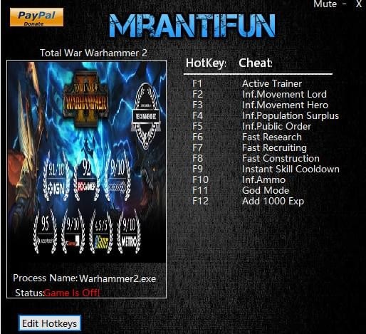 全面戰(zhàn)爭(zhēng)戰(zhàn)錘2修改器是專(zhuān)為《全面戰(zhàn)爭(zhēng)戰(zhàn)錘2》游戲玩家提供的修改工具。該工具擁有快速研究、快速募兵、快速建造、技能無(wú)冷卻、無(wú)限彈藥等等功能,為玩家提供強(qiáng)大的十二項(xiàng)游戲修改功能。