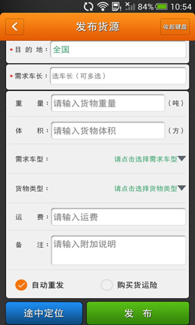首家擁有百萬(wàn)司機(jī)貨主的找貨找車物流信息平臺(tái)—運(yùn)滿滿貨主版用于物流發(fā)貨找車、調(diào)車、車輛管理等;定位管理:在征得車主同意的情況下對(duì)車輛司機(jī)手機(jī)進(jìn)行定位。運(yùn)滿滿是國(guó)內(nèi)首家基于移動(dòng)互聯(lián)網(wǎng)技術(shù),開(kāi)發(fā)的全免費(fèi)手機(jī)物流配貨平臺(tái),致力于公路運(yùn)輸行業(yè),為車找貨(配貨)、貨找車(托運(yùn))提供全面的物流信息服務(wù)。“運(yùn)滿滿”所服務(wù)的對(duì)象涵蓋所有類型的貨物和車輛,全面滿足中小企業(yè)的公路長(zhǎng)途整車運(yùn)輸需求。同時(shí)可提高車主配貨效率,降低回頭車、回程車、返程車的空返率,改善整體物流配貨找車效率。是節(jié)能減排、智能物流的樣板項(xiàng)目!0元享有海量一手貨源車源信息,就用物流配貨找車軟件—運(yùn)滿滿!