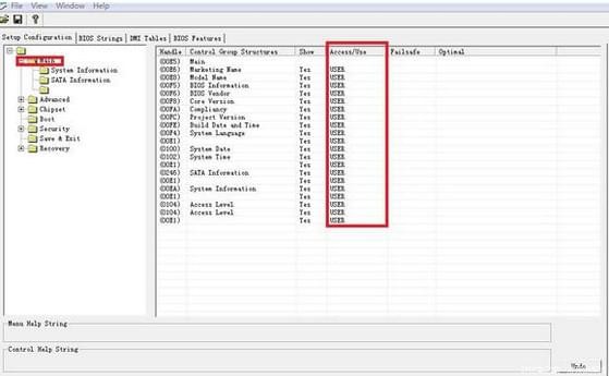 這就是我們?cè)贐IOS里第一頁(yè)能看到內(nèi)容,你說(shuō)看不到這么多?當(dāng)然,微星隱藏掉了嘛。我們需要將右側(cè)紅色框標(biāo)識(shí)的列全部由Default修改為“user” 就可以訪問(wèn)了。