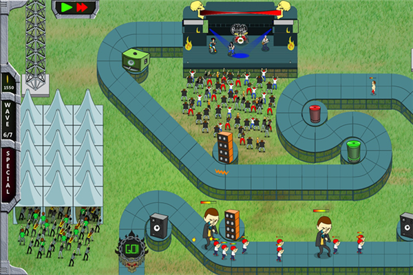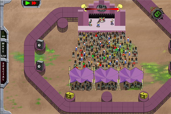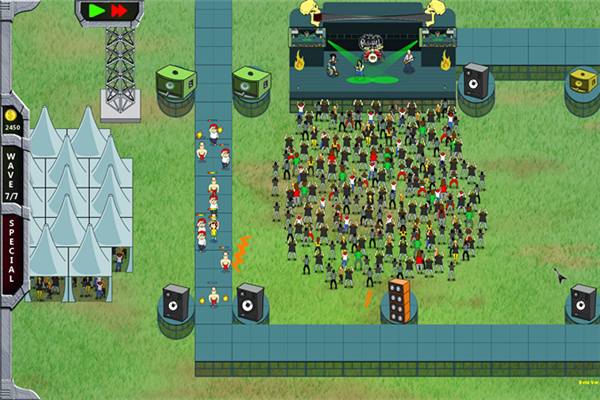 《搖滾塔防(Rock 'N' Roll Defense)》是NukGames制作發(fā)行的一款塔防游戲。這款游戲以塔防的形式阻止任何想要破壞搖滾音樂(lè)的人,選擇勁爆的歌曲,放置好你的樂(lè)器設(shè)備,一起開(kāi)始搖滾吧!【游戲特色】