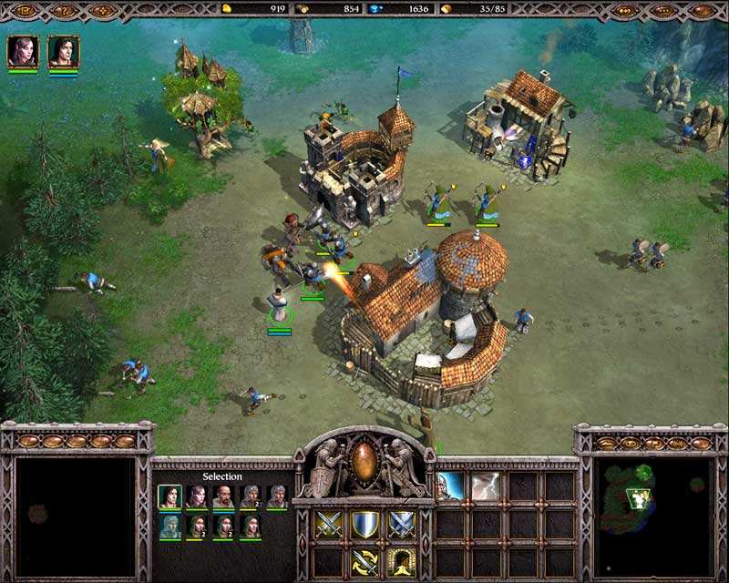 一開始馬上選2個混戰(zhàn),2個遠程,一個牧師編成一隊,從法師附近的圓形建筑進入地下,獲得一些資源。同時兵營開始生產劍士。升級你的部隊的武器和護甲。注意在提示你防守東門的時候,立刻把所有單位調往東門防守。有兩個混編部隊(各15個單位)基本上可以守住早期了。注意法師附近有個傭兵房,可以快速生產十字弓兵,可以有效地幫助防守。