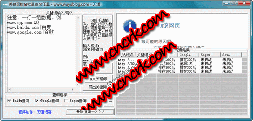 關(guān)鍵詞排名批量查詢工具 V1.1 簡體中文綠色免費版 批量查詢關(guān)鍵詞在搜索引擎的排名。