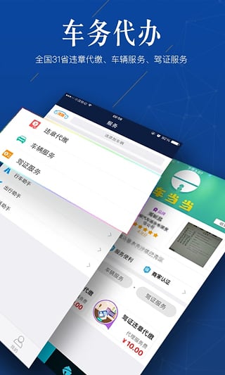 車輛服務(wù)、駕證服務(wù)、違章服務(wù),全國3500余家車當(dāng)當(dāng)聯(lián)盟商家為您服務(wù),查找服務(wù)地區(qū)→選擇服務(wù)項(xiàng)→與商家確認(rèn)項(xiàng)目→確認(rèn)金額→下單(坐等服務(wù))→完成→給個(gè)好評嘛