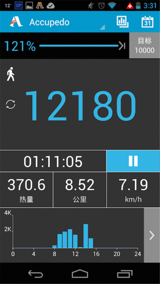 Accupedo是美國Corusen公司開發(fā)的一款計(jì)步器,在美國的iTunesstore已經(jīng)有超過500萬的下載量。此軟件是由官方上傳。該軟件可以在主屏幕監(jiān)測你日常的步行的手機(jī)軟件。有些收集在休眠(待機(jī),屏幕關(guān)閉時(shí))不支持G-sensor,主要原因是電話制造商的模式,這不是這app的缺陷。