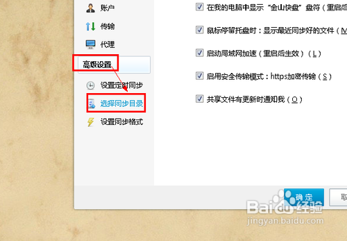 在設(shè)置窗體中,切換到“高級(jí)設(shè)置”下的“選擇同步目錄”選項(xiàng)卡頁(yè)面。