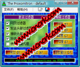 Proxomitron V4.5 漢化綠色免費(fèi)版 Proxomitron是一款瀏覽過濾器,號稱比Ad Muncher更強(qiáng)大,可以過濾 POP-UP 窗口、Alert 窗口、廣告、動(dòng)畫 GIF、背景音樂、聲音、動(dòng)態(tài) HTML 等,還可以替換成自己的內(nèi)容。