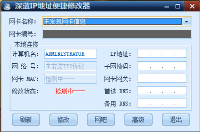 深藍(lán)IP地址便捷修改器是一款非常實用的免費ip地址修改器,該軟件具有IP地址修改、子網(wǎng)掩碼、網(wǎng)卡網(wǎng)關(guān)等功能,可以幫助用戶對自己的IP地址和DNS地址進(jìn)行快速修改。