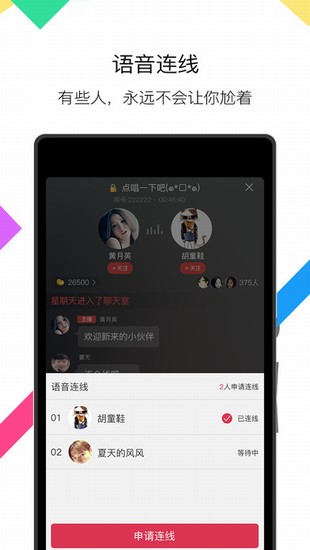 1、語(yǔ)音電臺(tái):輕松開播,無需露臉就可以做主播。2、多人連麥:聊得不錯(cuò),就一起上麥跟主播聊整天。
