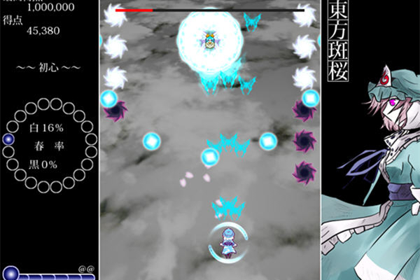 《東方斑櫻》是一款由日本獨(dú)立工作室制作發(fā)行的飛行射擊類游戲,這是一款超炫的彈幕游戲,也是《斑巫女》的續(xù)作,與之前的體驗(yàn)版一樣,該作使用了斑鳩系統(tǒng)的彈幕STG,不過不太相同的是,這一款作品更注重于直接吸收,也可以說是一種“STG方式的解密”。游戲主角西行寺幽幽子,她在黑白兩色之間與敵人戰(zhàn)斗,快節(jié)奏的模式讓你雙手顫抖!
