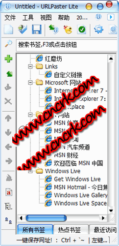 新一代便攜型書簽工具。一鍵收藏網(wǎng)址!自動(dòng)導(dǎo)入IE收藏夾書簽,高速網(wǎng)址查重,多線程死鏈檢查,可創(chuàng)建任意書簽?zāi)夸浄诸?僅一個(gè)EXE文件,綠色免安裝,絕不向IE中添加任何插件,全面取代脆弱的IE收藏夾。