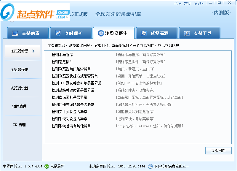 3、瀏覽器醫(yī)生保護(hù)了瀏覽器修復(fù),瀏覽器保護(hù)、瀏覽器設(shè)置、插件清理等;
