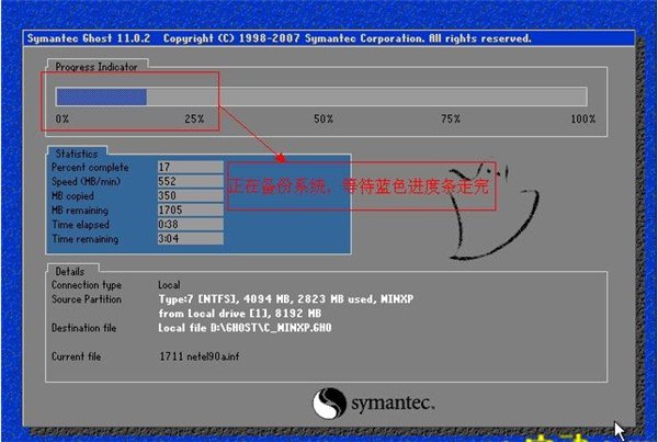 5、現(xiàn)在看到的是系統(tǒng)正在備份,請等待藍(lán)色進(jìn)度條走完