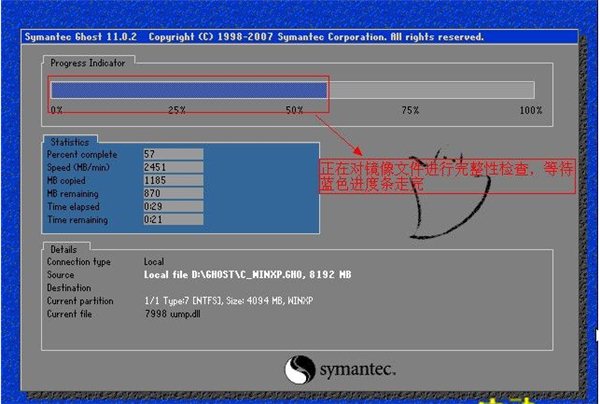 4、此時正在對鏡像文件進(jìn)行完整性的檢查,等待藍(lán)色進(jìn)度條走完