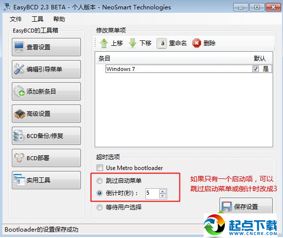 6、其他多余的啟動項,都是同樣的刪除步驟,最后,如果只有一個啟動項,那么可以選擇“跳過啟動菜單”或者倒計時設(shè)置3秒以內(nèi),保存設(shè)置;