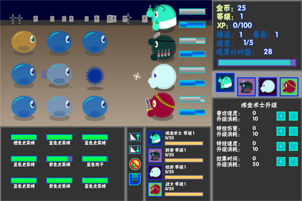 《放置史萊姆rpg(Idle Slime RPG)》多職業(yè)策略放置類游戲。可愛的史萊姆有法師、牧師、戰(zhàn)士、盜賊、刺客、煉金術(shù)士、商人共八大職業(yè)任你選擇。你可以只身前往地下城冒險,可以組建一個正常冒險小隊,也可以選擇一群法師或者一群戰(zhàn)士去地下城,怎么搭配好呢?(那是你的事 ^_^ )搭配屬于你的探險隊伍進入地下城吧。放置游戲,擋不住的誘惑!