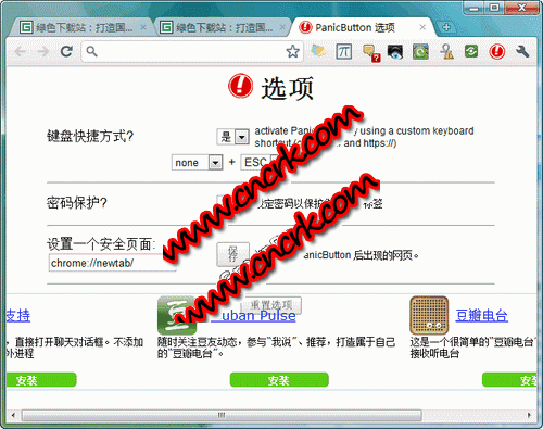 谷歌瀏覽器老板鍵插件 V0.11.1 簡(jiǎn)體中文官方安裝版 PanicButton 可使您更方便地一鍵隱藏所有標(biāo)簽。這些標(biāo)簽將被作為書簽存儲(chǔ)在單獨(dú)的文件夾中。此后 PanicButton 按鈕將變?yōu)榫G色,并顯示出當(dāng)前已經(jīng)隱藏了多少標(biāo)簽。