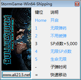 子彈風(fēng)暴完全版八項(xiàng)修改器是一款由peizhaochen玩家自制完成的游戲修改工具,擁有八項(xiàng)實(shí)用的游戲修改功能,操作十分簡(jiǎn)單,想要輕松通關(guān)的游戲玩家們趕緊在本站下載使用吧。【使用方法】