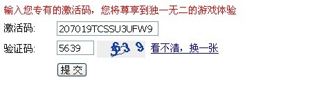 輸入您的盛大通行證及賬號密碼并點擊提交。注:一個激活碼只能使用一次,即只能激活一個賬號。