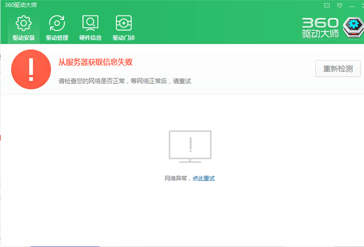 360驅(qū)動(dòng)大師提示"從服務(wù)器獲取信息失敗"及下載失敗怎么辦?關(guān)于用戶反饋使用驅(qū)動(dòng)大師提示“從服務(wù)器獲取信息失敗”及下載失敗的問(wèn)題,導(dǎo)致問(wèn)題的原因應(yīng)是用戶的所使用的網(wǎng)絡(luò)被劫持導(dǎo)致的,如遇到無(wú)法連接服務(wù)器的情況,請(qǐng)嘗試以下方法:
