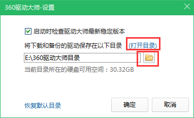 3、接著在彈出的窗口中就可以看到驅(qū)動(dòng)的保存位置了,點(diǎn)擊“打開(kāi)目錄”就可以來(lái)到驅(qū)動(dòng)存儲(chǔ)的文件夾,點(diǎn)擊小文件夾就可以更換驅(qū)動(dòng)儲(chǔ)存位置。