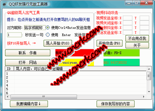 QQ好友強(qiáng)行無敵工具器 V1.0 簡體中文綠色免費(fèi)版 對(duì)于一些惡客的QQ好友我們有的時(shí)候真的看不慣,真的想好好教訓(xùn)一下這樣的QQ好友,下賣弄給大家推薦一款工具,可以給你的QQ好友發(fā)送信息,無任何限制的發(fā)送,一秒中可以發(fā)送好幾條,還可以我限制的發(fā)送視頻,工具使用簡單,一定可以幫你出口惡氣。
