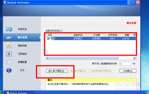 重啟后桌面,有Shadow Mod、就是 影子模式。自動(dòng)保護(hù)你的電腦,等價(jià)于一鍵還原