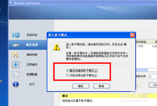 勾選、重啟后繼續(xù)影子模式
