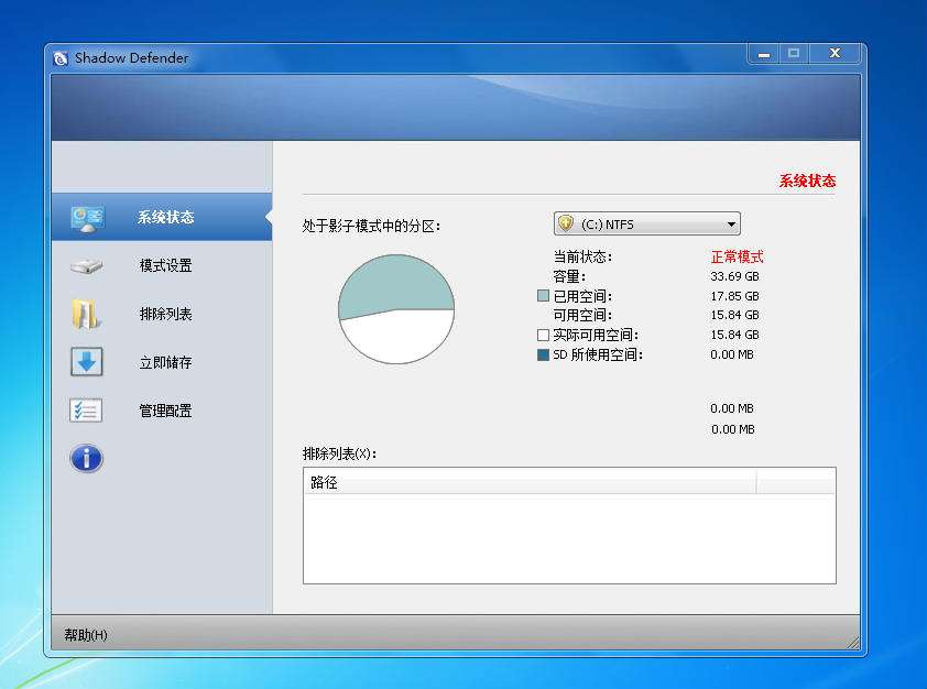 可以設(shè)置一個(gè)分區(qū)為影子模式,可以是系統(tǒng)分區(qū)和其它分區(qū),進(jìn)入此模式后,你對(duì)此分區(qū)上所做的任何改動(dòng)都會(huì)在重啟后失效,即使你在測(cè)試一個(gè)病毒。Shadow Defender 的不同之處在于支持排除與轉(zhuǎn)儲(chǔ)功能。你可以把處于影子模式中的文件或文件夾置入排除列表,那么你的所有更改將被保存到原始分區(qū)。