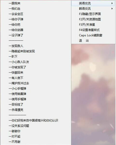 3、F1隱藏輔助界面,F(xiàn)2資源地圖,F(xiàn)3游戲準星,F(xiàn)4準星設置,還有個語音交流很不錯哦!